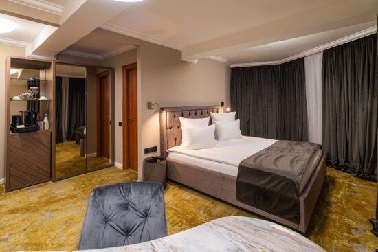 Dispunem de 3 categorii de camere – dublă matrimonială, dublă twin și single, fiecare cu eleganța ei aparte, care se deosebește prin stil și unicitate